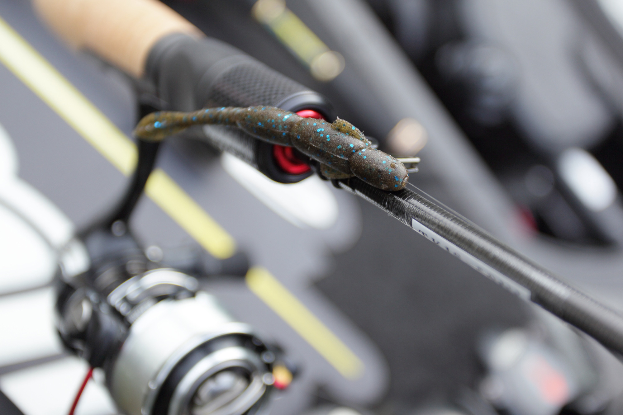 名前はまだ仮称だが、「キツツキ」みたいにネコリグやスモラバを超高速で叩き、その超微振動をしっかり伝える高弾性フルチューブラーティップ。