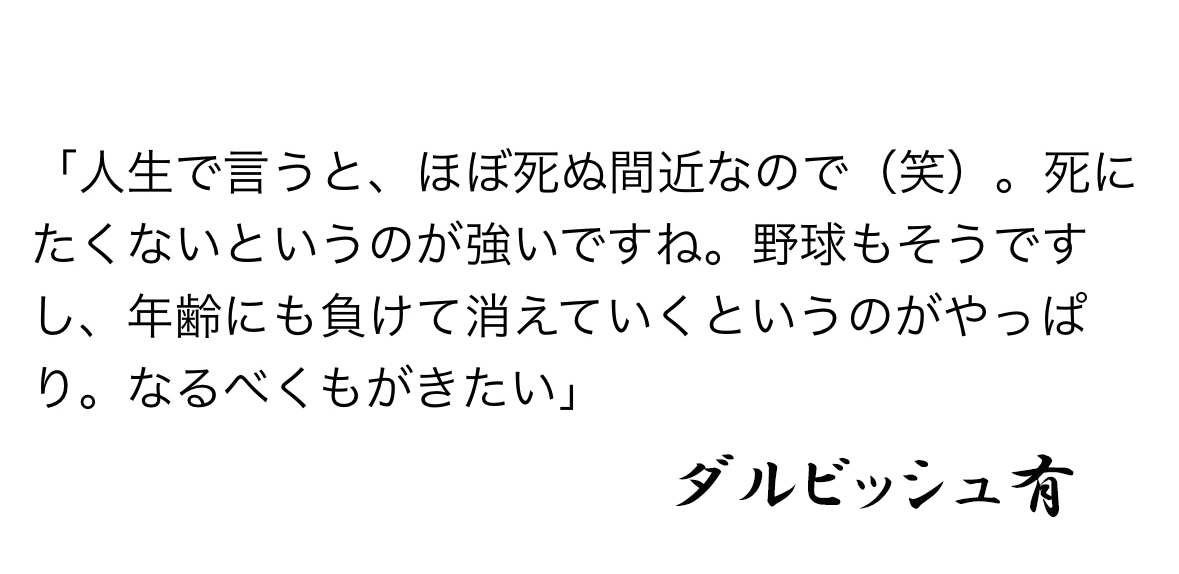 いやしかし、先週のドジャースとパドレスのポストシーズン最終決戦(第5戦)に登板し、素晴らしい投球をしたものの敗戦投手になったダルビッシュの言葉には感銘受けました。