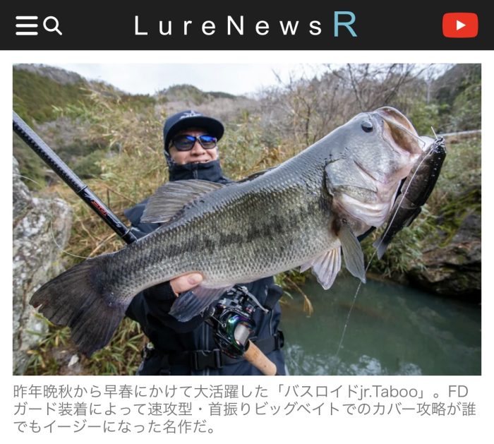 昨年冬からもはや秋冬の間違いない最強のビッグバスベイトとして常に先発ランナップしてるバスロイドjrTaboo。