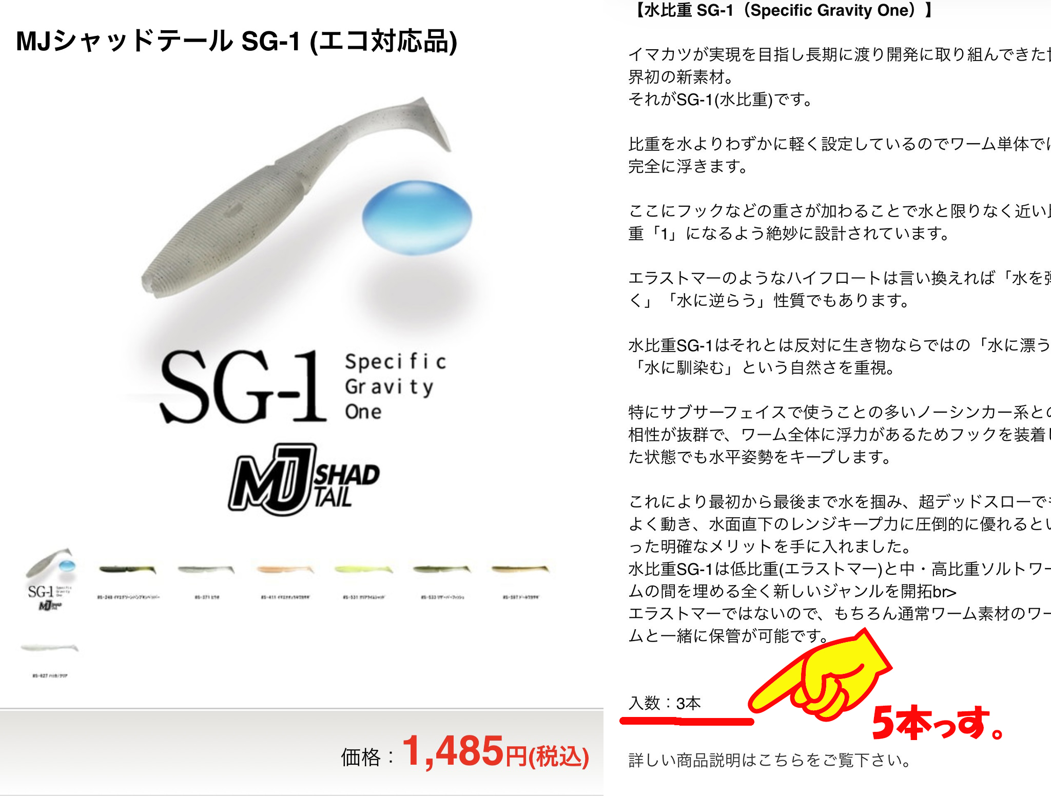 3本で約1500円って表示のMJ-シャッドSG-1を、1本500円高杉~って引きながらも勇気を出して買ってみたら…