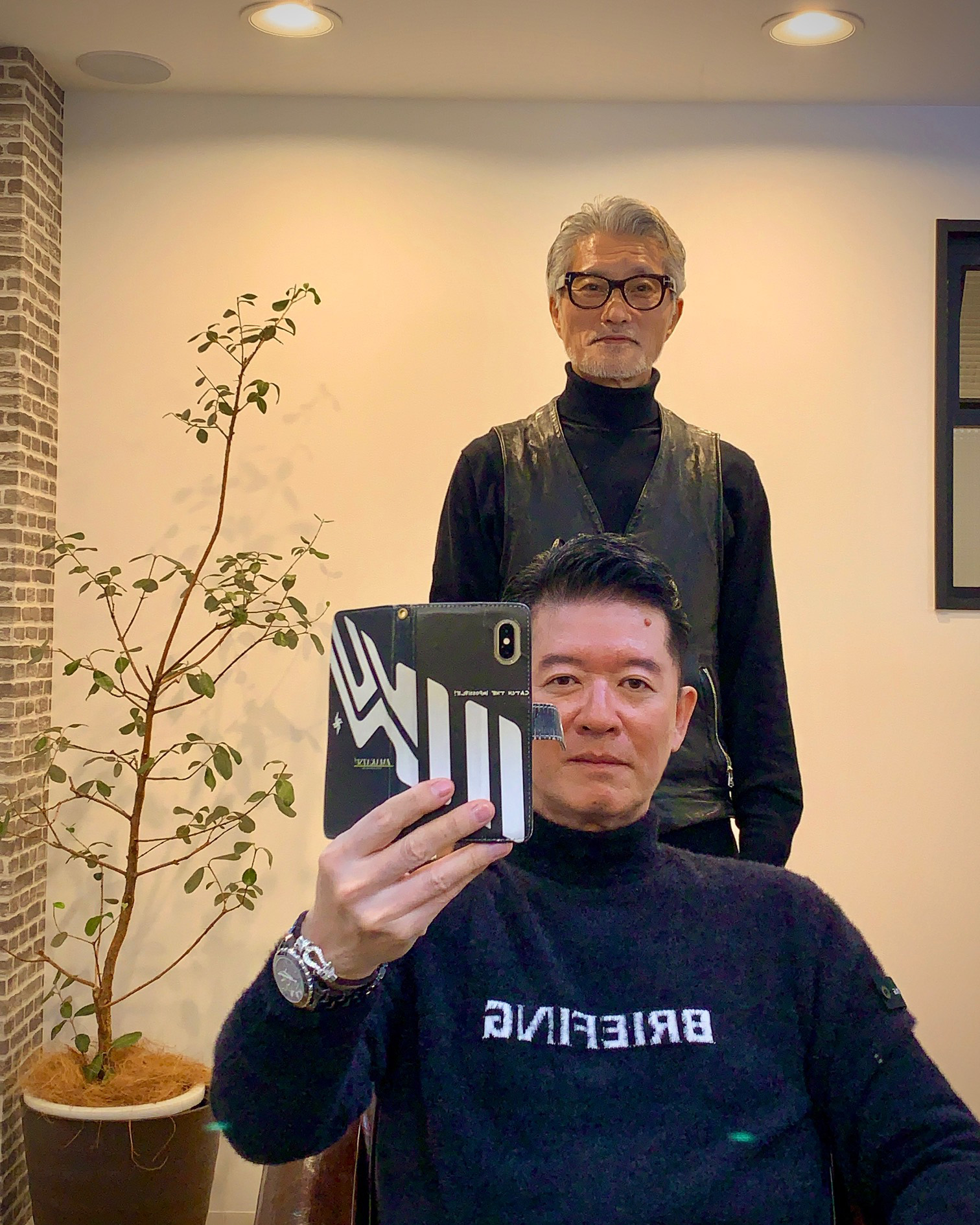 後ろの方は、自分の髪を30年以上、カットし続けてくれた唯一のカリスマ美容師先生。