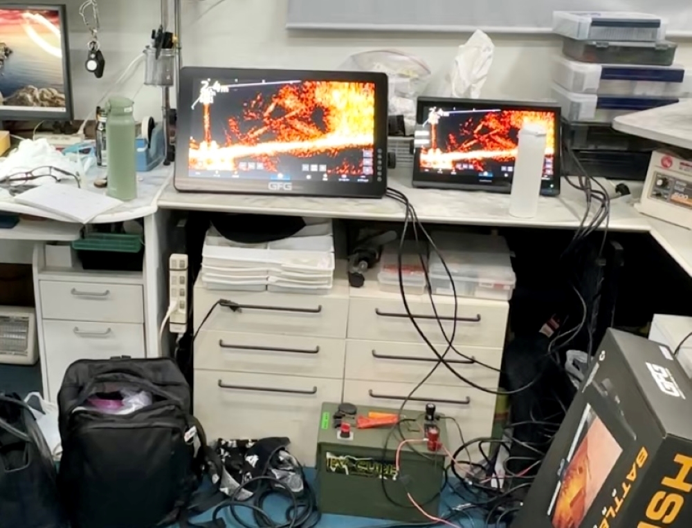 早く試してみたいんで、今日は工場のプールに端子とブラックボックス持ち込んでプールでライブサイトしてみました。