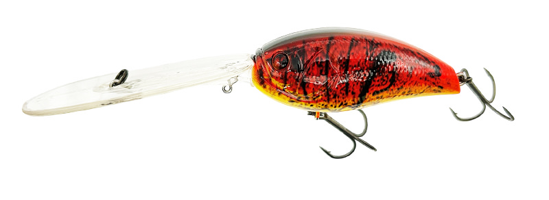 8m レンジに群れやすい、ワカサギレイクのビッグバス攻略のために開発されたIK800R2。エアロダイナミクスを極めたボディは空気抵抗を極度に廃し、イーターⅡで培ったエアロリップ効果で矢のようなロングキャストを可能にしました。IK800R2の潜行能力は、キャスティングでクラス最深の5.5mをクリアし、50m以内のドラッギングで8mオーバーに到達します(共に12LBフロロ使用時)。また、独自開発のオプションハンガーにクイックチェンジャーシンカー(推奨5g)をセットすると、さらに飛距離、潜行深度、潜行範囲が劇的に向上。フルキャスト後、ルアーをボトムまで沈め、次にラインが十分沈むのを待ってからドラッギングを行うことで、JBの50mドラッギングルール内でも楽々8~10mレンジをべったりと舐めるように引くことが可能です。日本のワカサギレイクを射程に収めた唯一無二のスーパーディープクランク、IK800R2が深海の勢力図を一変させます。