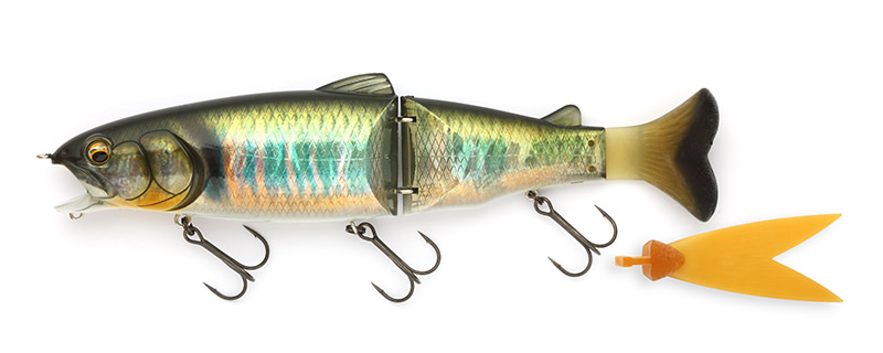 280mmの巨大なボディーながら湾曲したスロープ状に対面した広角可動ジョイントにより、意志通りに動く360度近いテーブルターンと、軽快でイージーな首振り水中ドッグウォークがジャバロンテールモードの特徴。ヒラヒラッと波打つジャバロンテール特有の動きが、静止時にも自発的な動きでバスの捕食本能を刺激します。