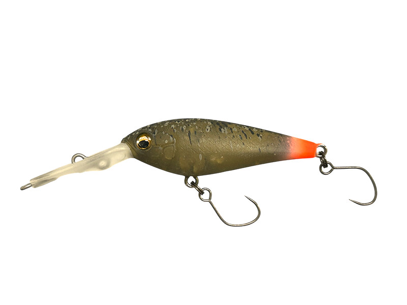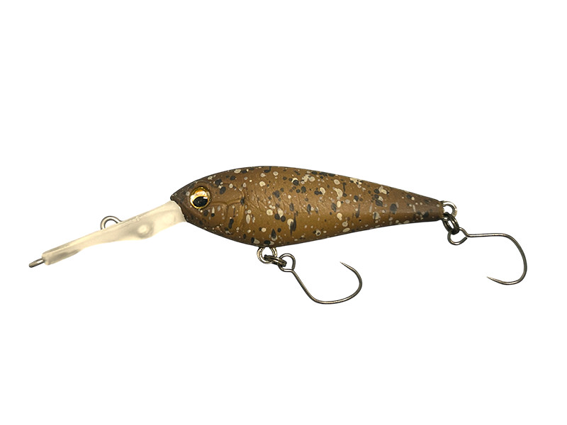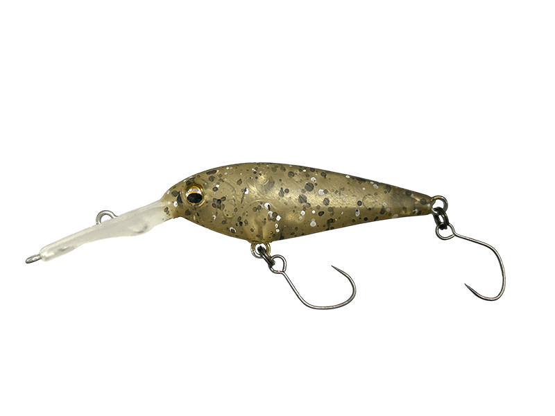 キャスト後、まずはボトムまでフォールさせます。フォール中に追尾したトラウトがバイトしない場合は、ボトムをゆっくりとリトリーブ。それでも反応がなければ、リップでボトムを軽く叩く程度のソフトトゥイッチを行います。最後はC.B.S.(カウンターバランスシステム)の性能を最大限に活かしたやや強めのトゥイッチで口を使わせ仕留めます。マッディレイクではこのアクションを想像して使ってみてください。