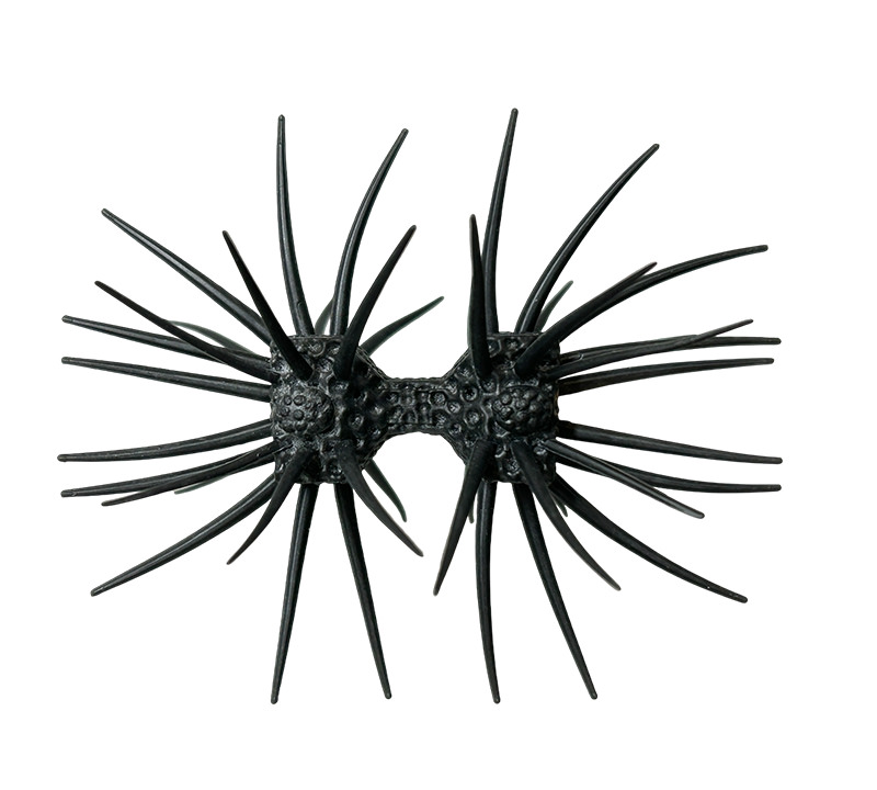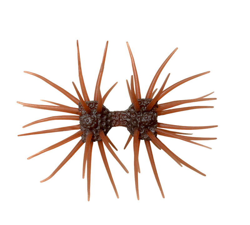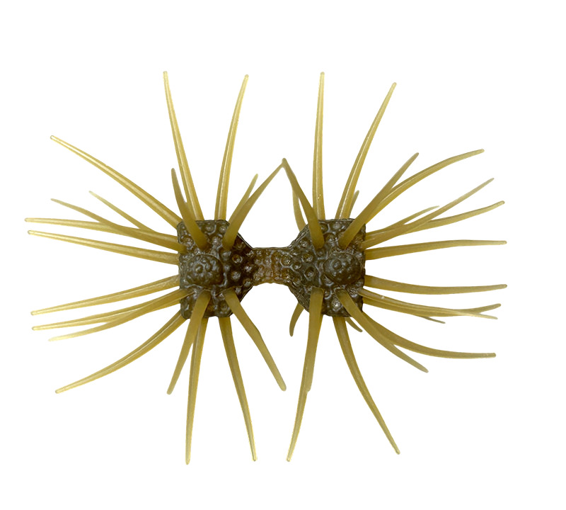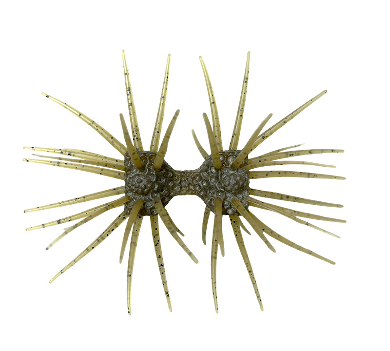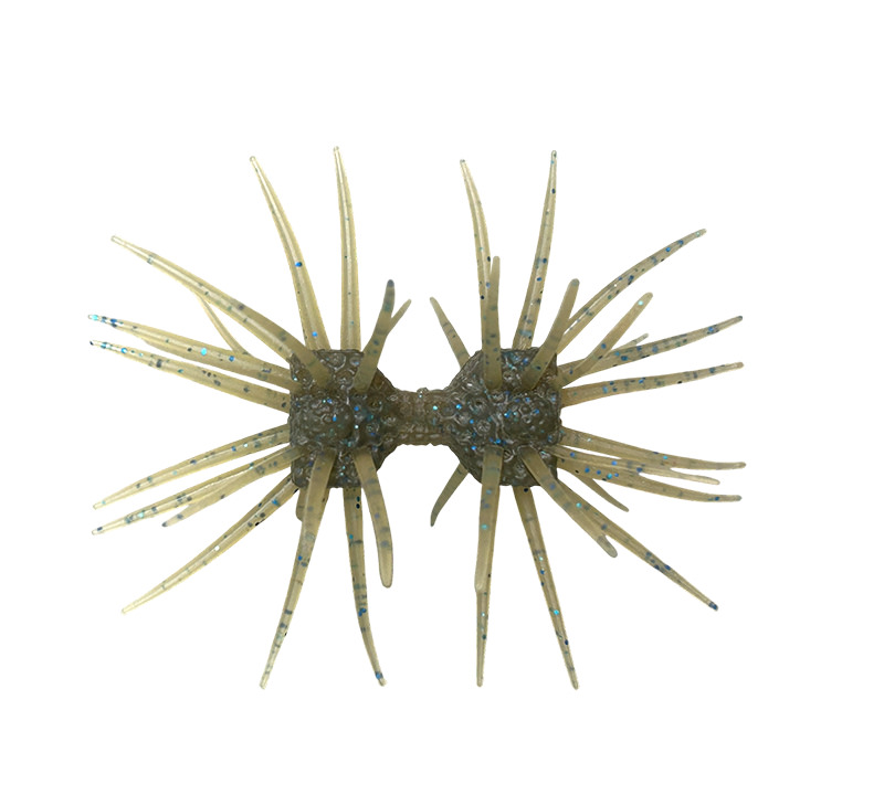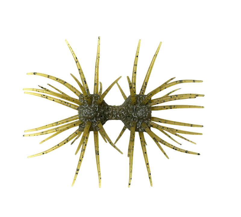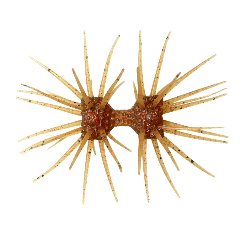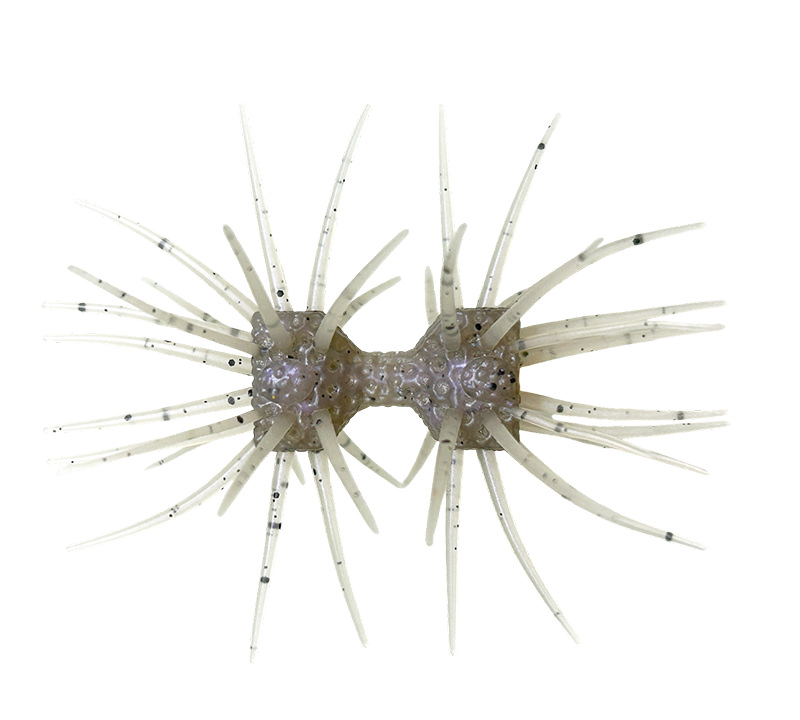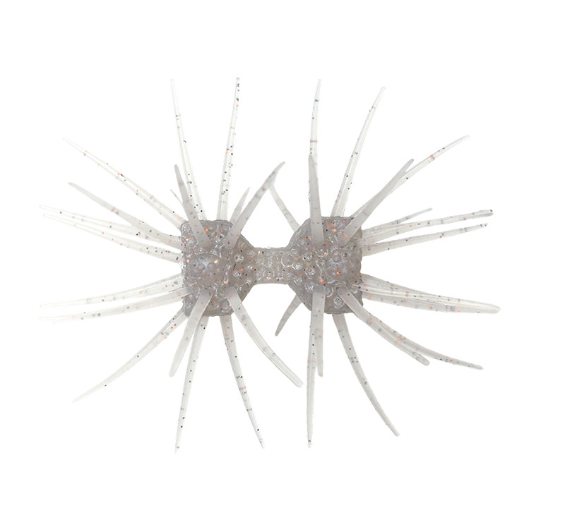 毛モノにこだわりの強いイマカツが、数多のサンプルから導き出した『柔らかすぎず硬すぎない』やや硬の絶妙なエラストマーマテリアル。16方向に生えた毛がフックをシルエットに溶け込ませ、さらにどの角度から見てもシルエットが似ているので、バスに形状を把握させにくく見切られにくい。